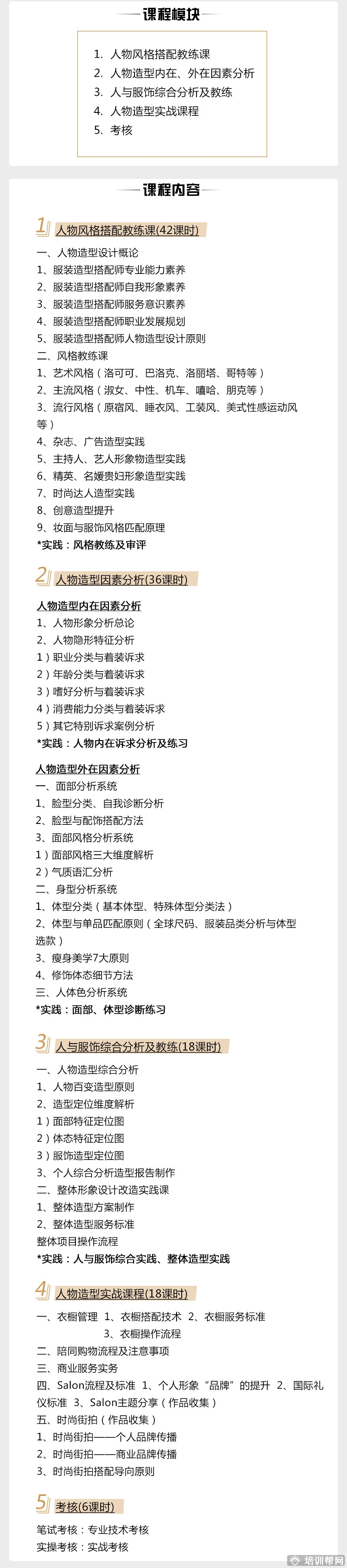 核心服饰搭配班、电商视觉服装搭配班、人物时尚造型搭配班、实体服饰陈列搭配班、终端创新零售搭配班
