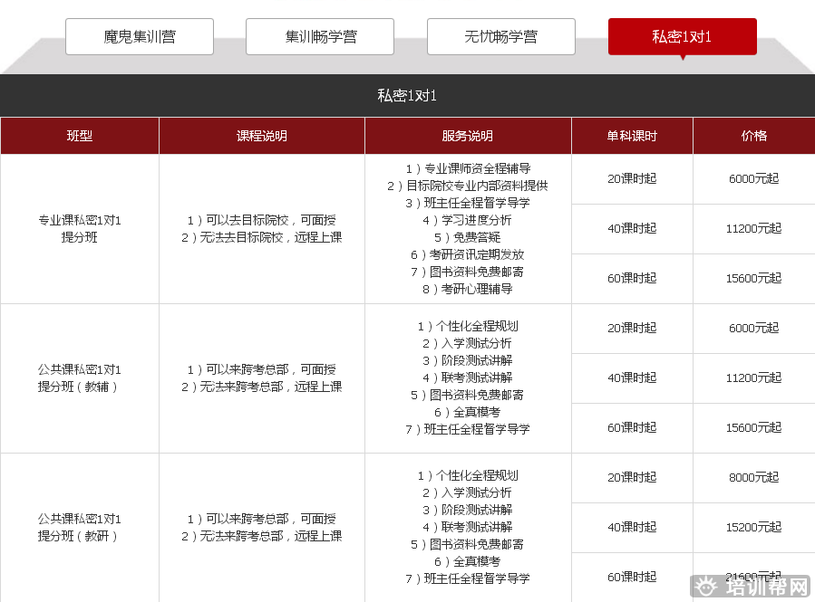 白班、晚班、业余制班、周末班、一对一定制课程(详情请咨询顾问)