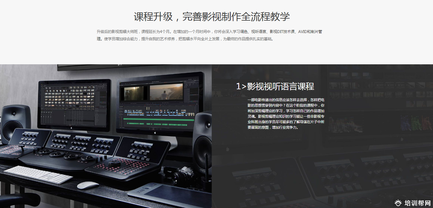| 影视理论 及DIT | 影视视听语言 通过理论相关知识的讲解,让学生了解影视中前期、中期、后期所要掌握的知识。在影片剪辑的工作中更加得心应手。把学生的剪辑水平向全片上进行提升。 | |