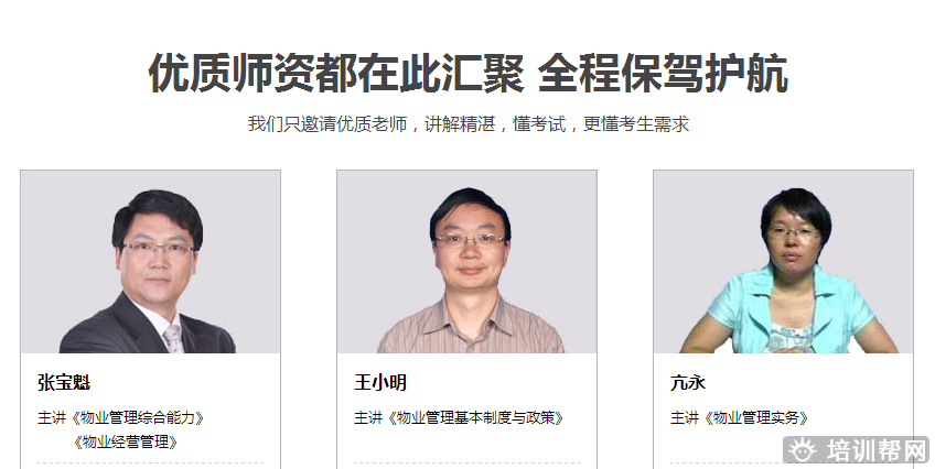 业界第一品牌: 注册物业管理师培训第一品牌保障,中国物业管理协会顾问单位。