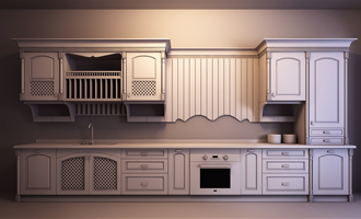 | 第十一部分 | 1. 照片级欧式家具模型制作 2. 橱柜下柜水槽及出水龙头组件制作 3. 下柜装饰花盆制作 4. 上柜柜体定位 5. 上柜柜体制作 6. 上柜柜体雕花处细节制作 7. 独立调整剩余部分达到精确水平 | ||