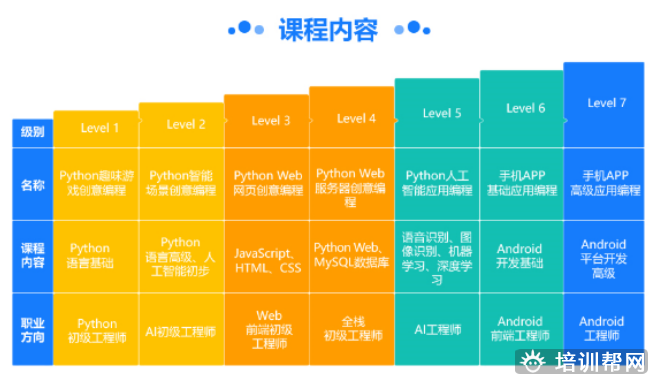 人工智能编程课程,面向6-18岁青少年,内容涵盖少儿启蒙编程(Scratch)和少儿趣味编程(Python、Javascript、HTML、CSS、Java),课程通过编程游戏启蒙、可视化图形编程等形式,培养学生的计算思维和创新解难能力。