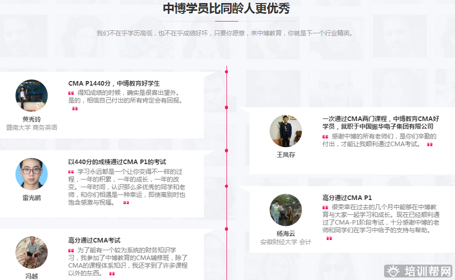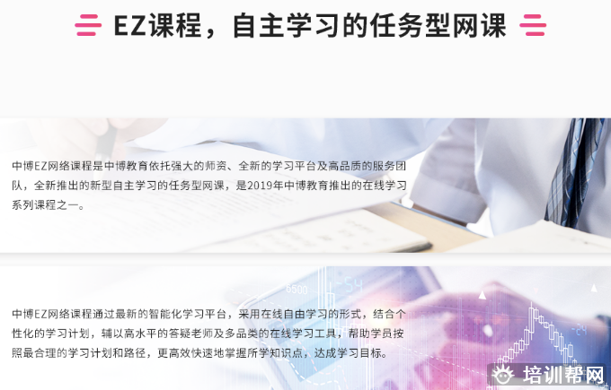 在ACCA、CMA、CFA®、FRM®、CIMA、CICPA等国际高端财经金融证书的教育上,中博教育以先进的知识管理体系、完善的客户服务系统、持续改善的学习型文化,赢得了学员的信赖,领跑于中国高端财经培训业。