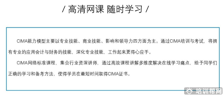 关键词:深圳CIMA网络标准课程 深圳CIMA网络培训哪里有?