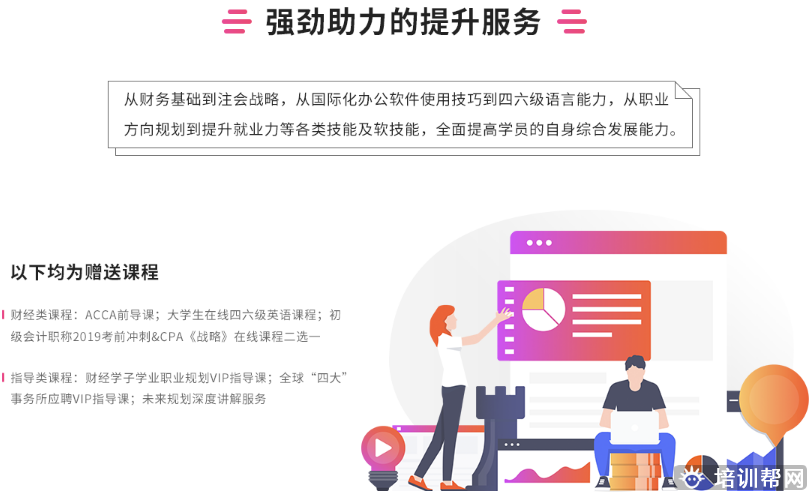 历经十四年,业务范围已经延展到泛财经网络教育、金融板块国际高端课程、企业内训、考研培训、财经垂直实训与招聘、语言培训以及国际留学等项目。
