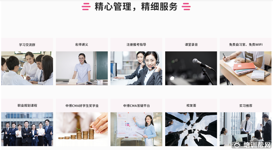 在ACCA、CMA、CFA®、FRM®、CIMA、CICPA等国际高端财经金融证书的教育上,中博教育以先进的知识管理体系、完善的客户服务系统、持续改善的学习型文化,赢得了学员的信赖,领跑于中国高端财经培训业。