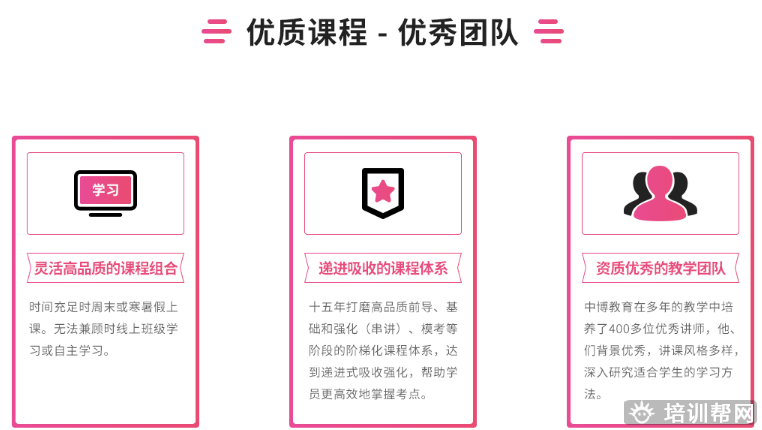 在ACCA、CMA、CFA®、FRM®、CIMA、CICPA等国际高端财经金融证书的教育上,中博教育以先进的知识管理体系、完善的客户服务系统、持续改善的学习型文化,赢得了学员的信赖,领跑于中国高端财经培训业。