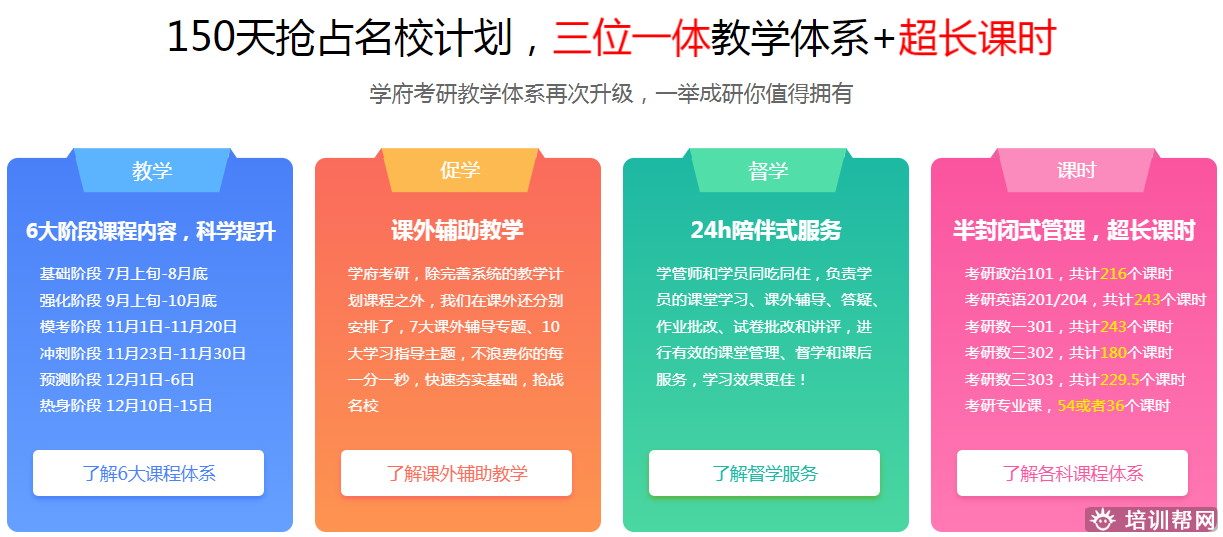 北京学府考研 ,考研行业专业辅导品牌,全科考研辅导专业化培训机构,短短数年内打造了“学府考研”这一国内知名的高端教育品牌,目前已经发展为集教育培训、图书出版、教育研发、服务咨询、在线教育为一体的大型综合性教育机构。 学府考研辅导教师自上世纪80年代开始从事考研辅导培训,至今也有20多年的辅导历史,培养了一支以黄庆怀教授为代表的经验丰富、学术精湛、成效显著、全国知名的考研辅导团队,授课20年来辅导考研学员已超过10万人。近几年,大量在国内享有盛誉的考研辅导专家的加盟使学府成为考生公认的教学出众、预测精准、服务周全、课程科学、规模大,享誉全国的名牌考研辅导机构之一,综合实力名列全国考研辅导班前列。 学府教育紧紧围绕硕士研究生入学考试这一领域,打造了学府公共课、学府高端钻石卡、学府精品课程、学府专业课,学府全日制集训营等优势考研培训项目,赢得了考生对“学府考研”这一品牌的充分信赖和支持,在广大考生中树立了良好的信誉。我们热忱希望考研的同学来学府参加培训,通过自身努力和我们高质量、高水平的辅导,最终创造人生的辉煌