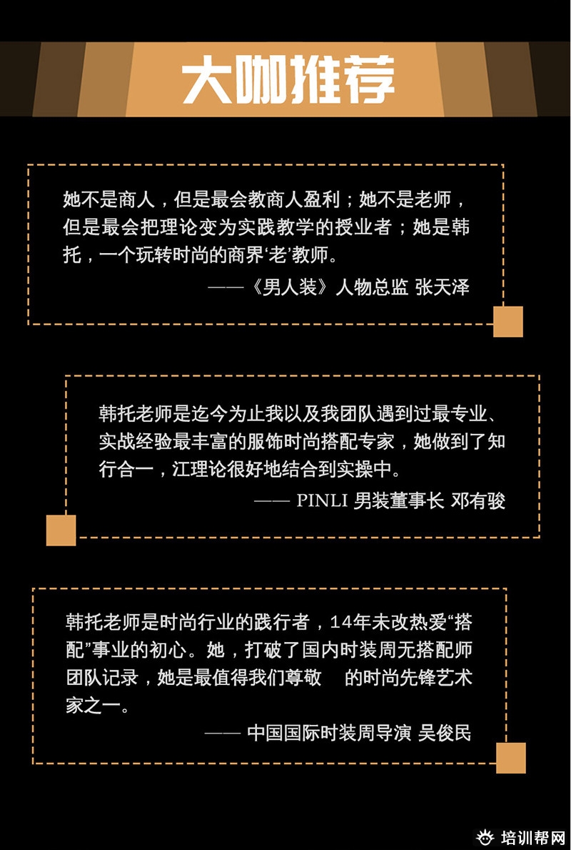 米兰欧国际时尚教育联合创始人兼首席技术官韩托女士,是中国搭配营销创始人之一,中国商业服饰搭配课程体系创立者及践行者,电商视觉营销系统、实体终端连带、订货系统创建者,著名时尚造型师、时尚搭配教育推广导师。