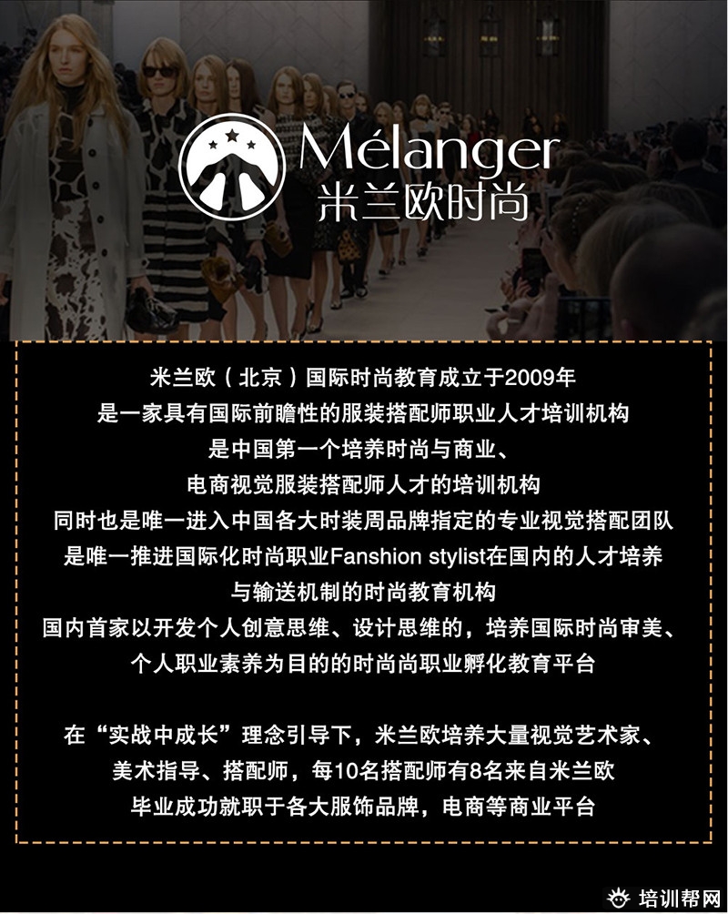 米兰欧国际时尚教育是创始于2009年,其创始人韩托女士。米兰欧国际时尚教育专注于培养时尚职业从业者,打造互联网时尚场景教学模式和中国美学全生态产业平台。