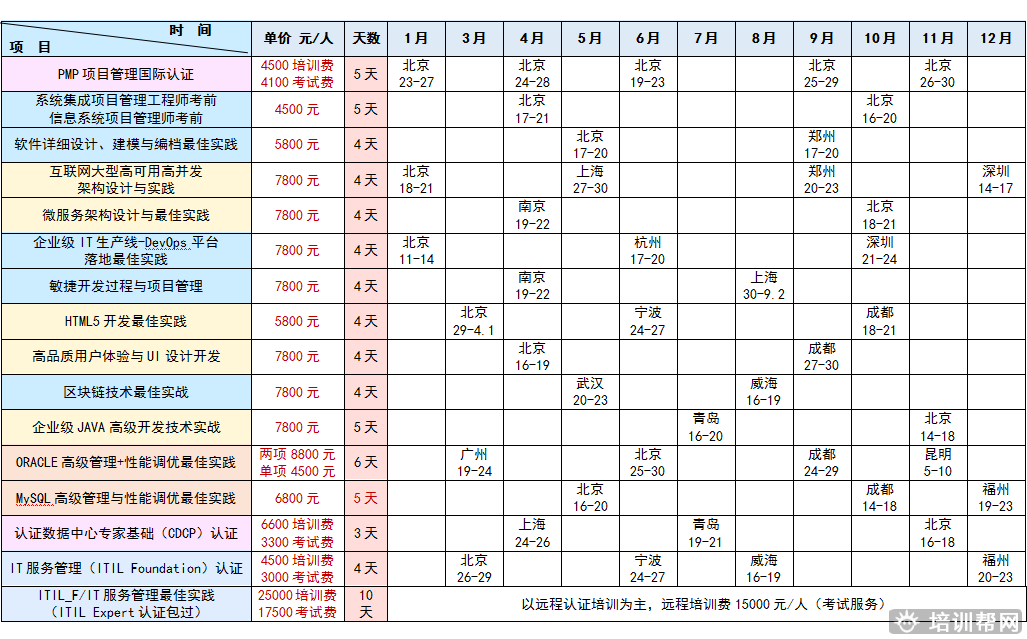 有面授公开课,企业内训。远程网络课,IT认证(面授与远程都可以)。