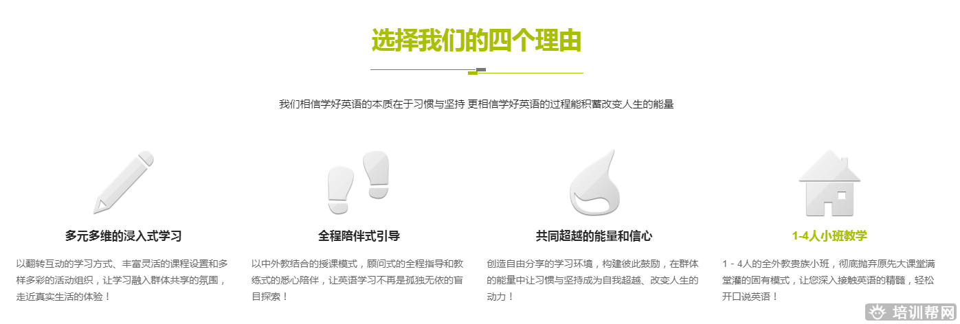 以中外教结合的授课模式,顾问式的全程指导和教练式的悉心陪伴,让英语学习不再是孤独无依的盲目探索!