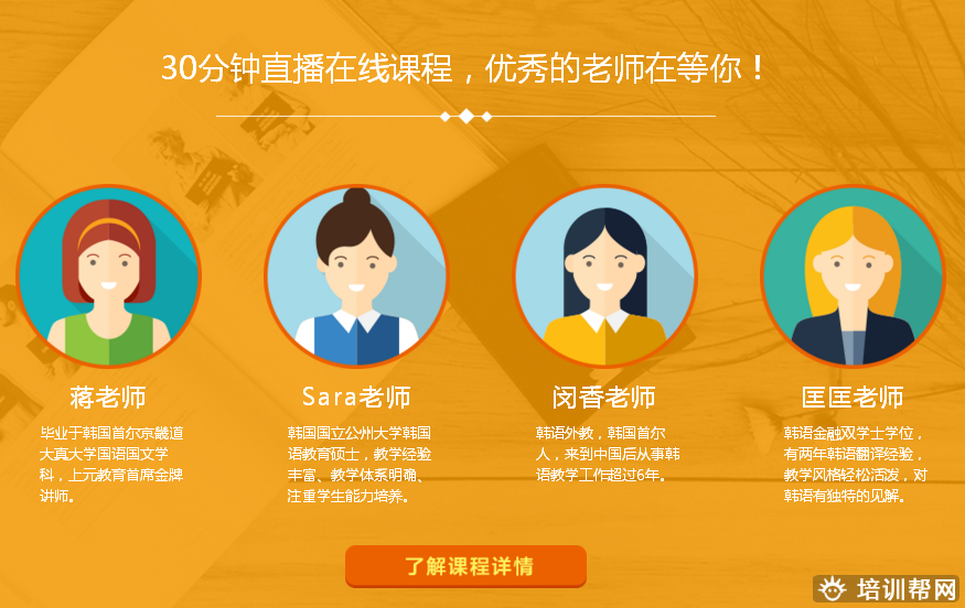 本着以“质量教学”为核心,上元知道课程设置最不容忽视,学员的学习建议就是我们的研发课题,在办学多年的基础上,上元的课程建设凝聚了一批又一批师资们的汗水,上元针对不同培训需求和目标选用了最适合岗位需要的培训课程,在泰兴上元韩语培训教学大纲中,纳入了老师们多年工作经验的实际案例,毫无保留的与学员们共同分享。