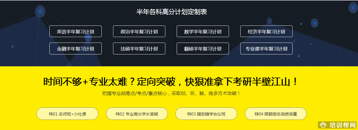 | 跨校跨专业、大三大四/全职考研、二战/N战考研学员全日制专属辅导课程 | |||||||