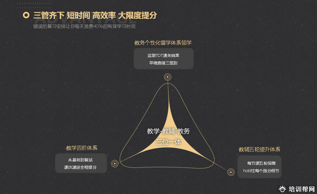 合理的课程设置、权威的师资队伍;超长的课时夯实专业课基础;跨考考研基础薄弱考生夺高分的快车道。