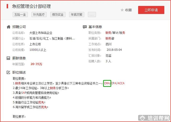 国家大力推广“CMA认证是世界财会领域的权威标准,具有很强的实用性,该证书的成功引进,对我国紧缺的高级管理会计人才的培养,对企业特别是大中型企业战略决策能力及国际竞争力的提升,对中国高效透明的资本市场的建设,有着极大的推动作用和意义!”