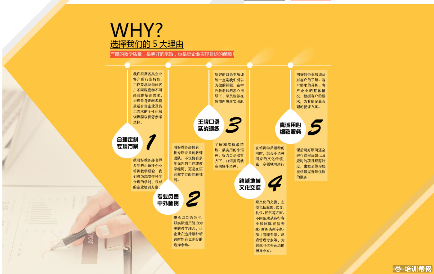 1、量身定制外语成才计划,科学的入学测评体系,确定学员最适合的学习课程;