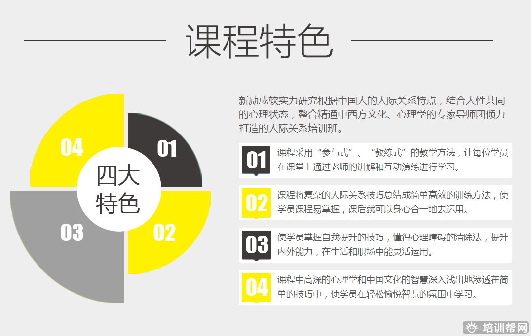 南京新励成的专业师资力量雄厚,汇集90位专职讲师,拥有自主知识产权体系和 南京新励成特色课程产品体系,累计为16万+人次和200余家企业提供演讲口才、人际沟通、企业管理、团队建设等方面的专业训练。