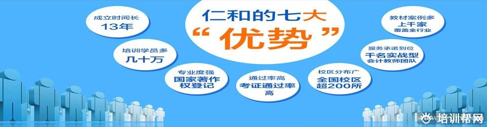 仁和会计教育以“理清中华企业财富,培训中国会计精英”为公司发展使命,专业提供会计实战教育培训、企业财税管理咨询、中小企业代理记账、会计人才推荐四大核心板块服务,目前仁和已进驻北京、上海、广州、深圳、重庆、成都、合肥等60多个城市。仁和专注于会计实战培训,凭借雄厚的师资力量、领先的实战教学,严谨的教学作风为社会培养了大量实战型会计人才,深得学员、企业和社会各界的广泛肯定与赞誉,是会计职业培训领域的知名品牌。