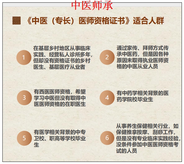 以师承方式学习中医或者经多年实践(即跟师学习、中医世家、祖传等相关人群).