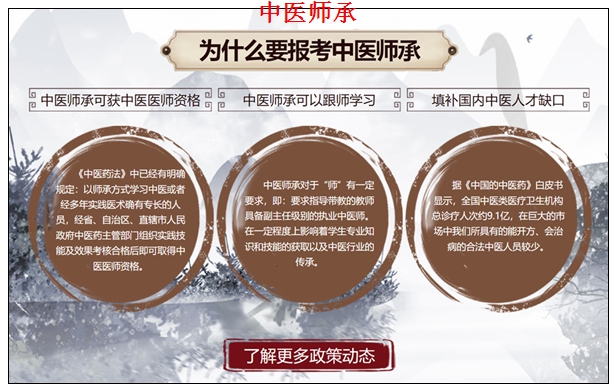 《中医药法》中已经有明确规定:以师承方式学习中医或者经多年实践医术确有专长的人员,经省、自治区、直辖市人民政府中医药主管部门组织实践技能及效果考核合格后即可取得中医医师资格。 沈阳中医师承培训,沈阳传统师承培训考证,沈阳优路中医师承辅导班励志格言:早知今日读书是,悔作从前任侠非。——(唐)李欣铁西中医师承辅导师承班。