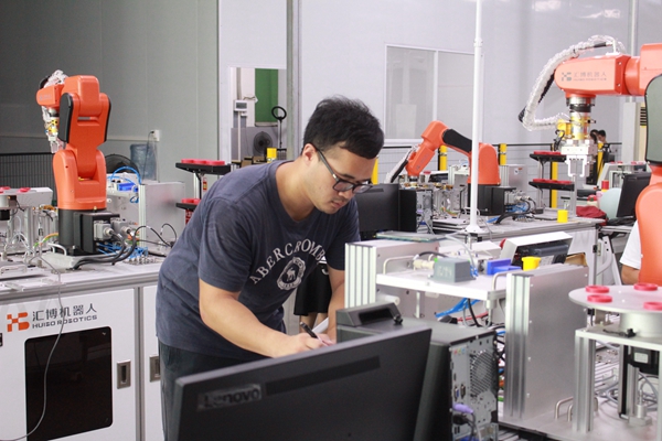 | 									工业基础 依托汇博机器人工业项目(江门东鹏洁具等整厂自动化改造项目)、组织全国智能制造机器人等竞赛积累了丰富的教育经验与成功案例 | 									实训中心运营 设有多个线下实训中心,配置高规格实训设备,为大批量、高规格人才培养提供实训设备与场地支持 |